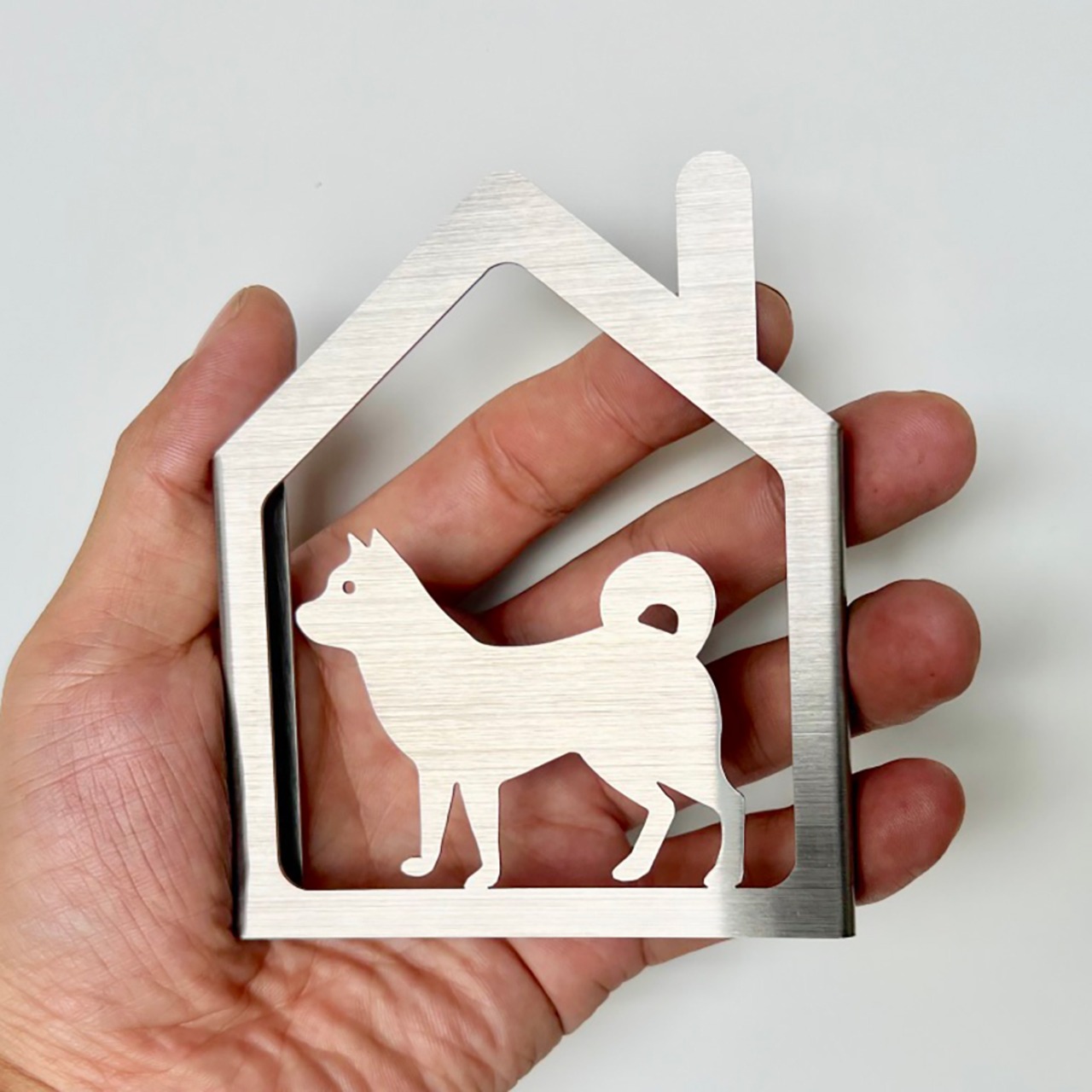 " いぬが家にいます。" 立体プレート 全3種類 白犬 黒犬 ステンレスヘアライン 犬絵柄 いぬ 犬 表札 看板