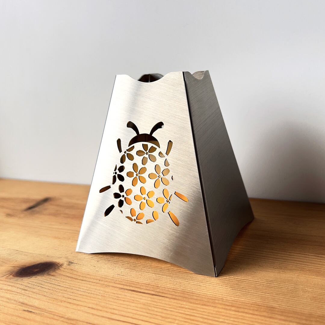 " 花柄てんとう虫の行灯" ステンレスヘアライン キャンドルライト 照明