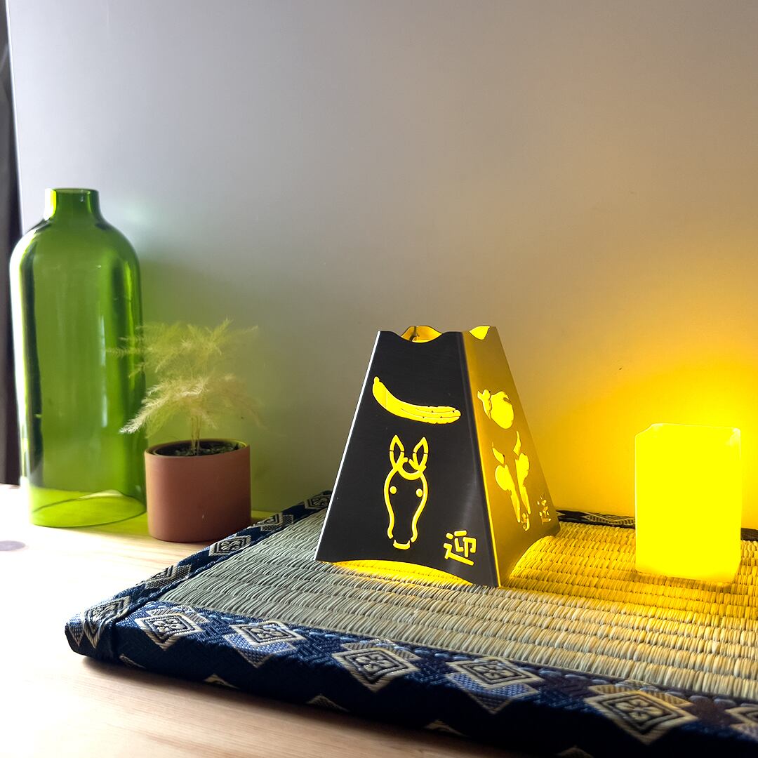 "迎え火送り火"に見立てた行灯には、片面側に迎えに行く時に乘る